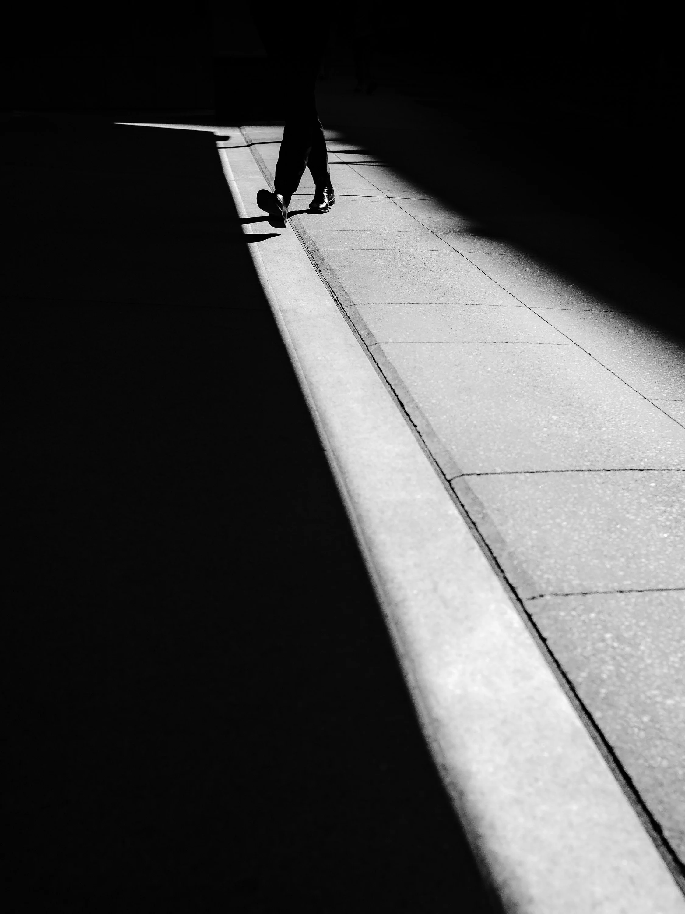 Captured at the precise second a stride crosses the threshold from deep, heavy shadow into sharp midday light, it is a masterclass in intent. This piece serves as a visceral reminder that regardless of the darkness we leave behind, the act of moving forward is a deliberate choice we make with every single step. A cinematic study of momentum and the quiet, inner starburst of resilience required to step into the glow.